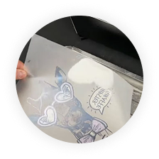 Uz toplinu i pritisak, dizajn se prenosi na odabrani tekstil.