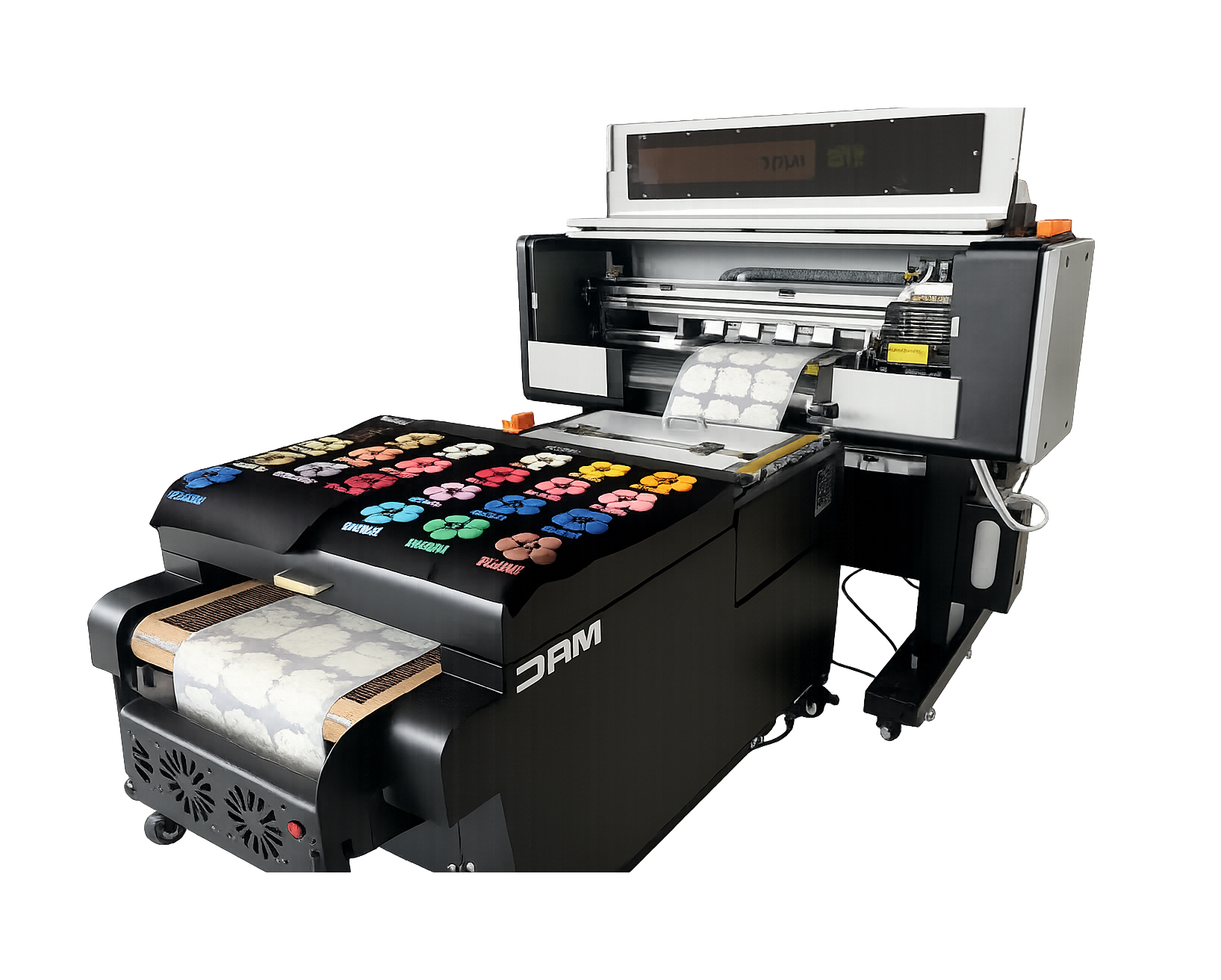 Ovaj set uključuje automatski DTF shaker, prikladan za male i velike serije jer ima vakuumski stol. Posebna funkcija ovog shakera je mogućnost automatskog vraćanja DTF praška, koji pada u sakupljač, natrag u proces. DTF prašak je ključan jer djeluje kao ljepilo – ako nije pravilno nanesen na film, transfer neće funkcionirati.